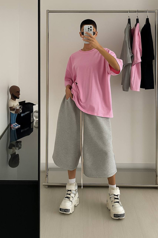 شلوار واید بگ ملانژ داخل کرکی