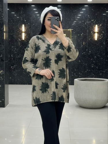 ناموجودبلوز آستین ۳ ربع سرشانه برگی