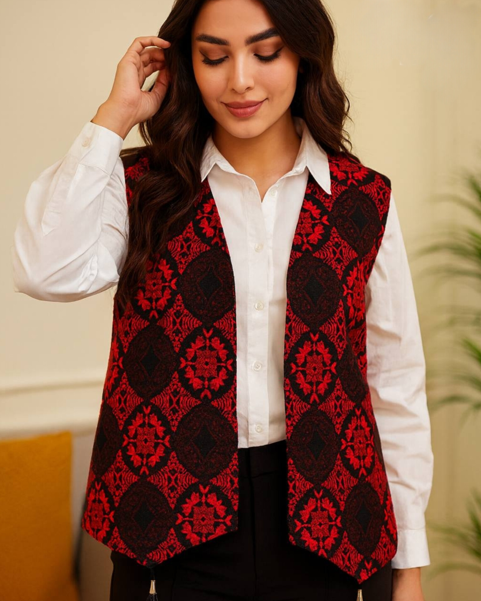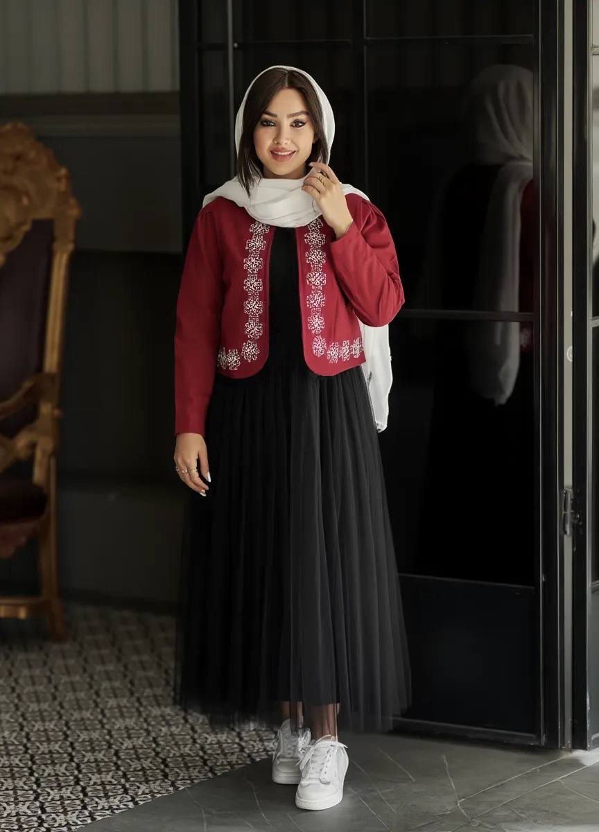 ناموجودبافت گلدوزی لطیف آستین و پایین گت دار یقه گرد
